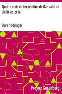 "Quatre mois de l'expédition de Garibaldi en Sicilie et Italie" by H. Durand-Brager is a historical account written during the mid-19th century. The book chronicles the significant events surrounding Garibaldi's military campaign in Sicily and Italy, highlighting the political and social climate of the time, along with the perceptions of Garibaldi ...